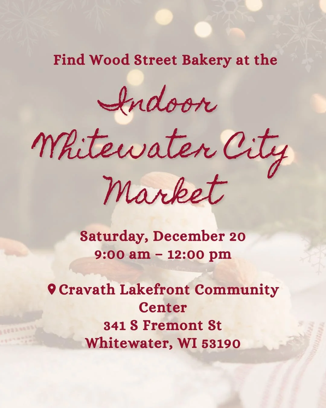Wood Street Bakery is a home-based, state-certified business in Whitewater, Wisconsin with a passion to provide healthy baked goods for you and your community. We bake artisan bread, granola, and other specialty items from scratch, using whole grains, minimal sugar, and no preservatives. From Scratch, From Home, From Family!